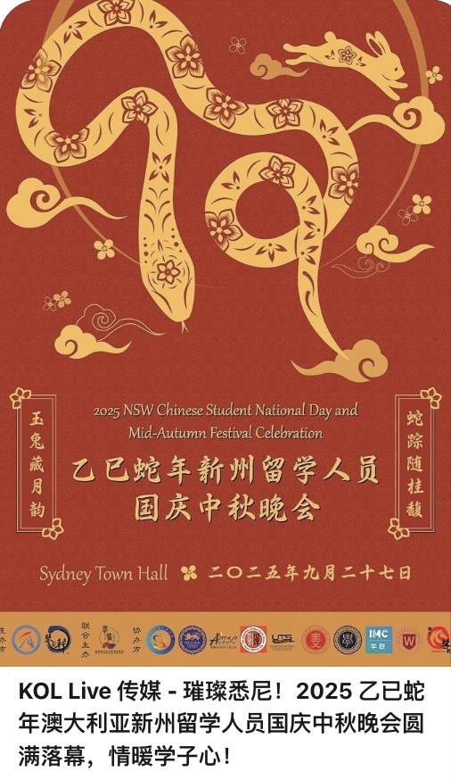 KOL Live传媒 – 璀璨悉尼!2025 乙已蛇年澳大利亚新州留学人员国庆中秋晚会圆满落幕,情暖学子心!云相册 – https://v.piufoto.com/r/iqIBNr/